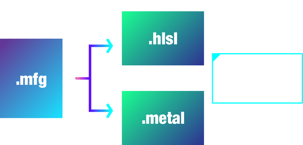 In the past, a complied library such as DLL needed to be added as a plug-in in order to add a filter. This method requires preparing a separate library per OS, however some OS doesn't allow to add such library. MFG generates the optimized shader order per OS by writing a filter in the dedicated language. From one source code (filter processing MFG code), it enables the filter processing by utilizing the GPU performance. Without requiring the developing environment, the high-speed processing filter can be developed and added.