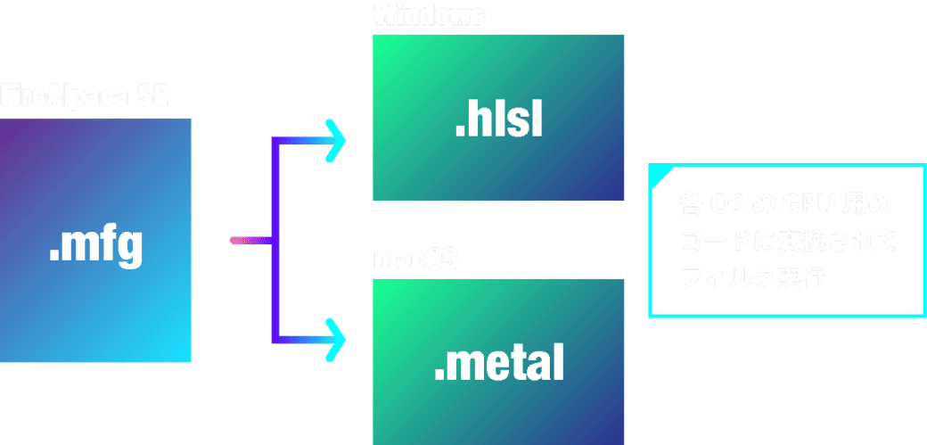 Windows環境とmacOS環境で、別々のGPUプログラムに変換される革新的な仕様。